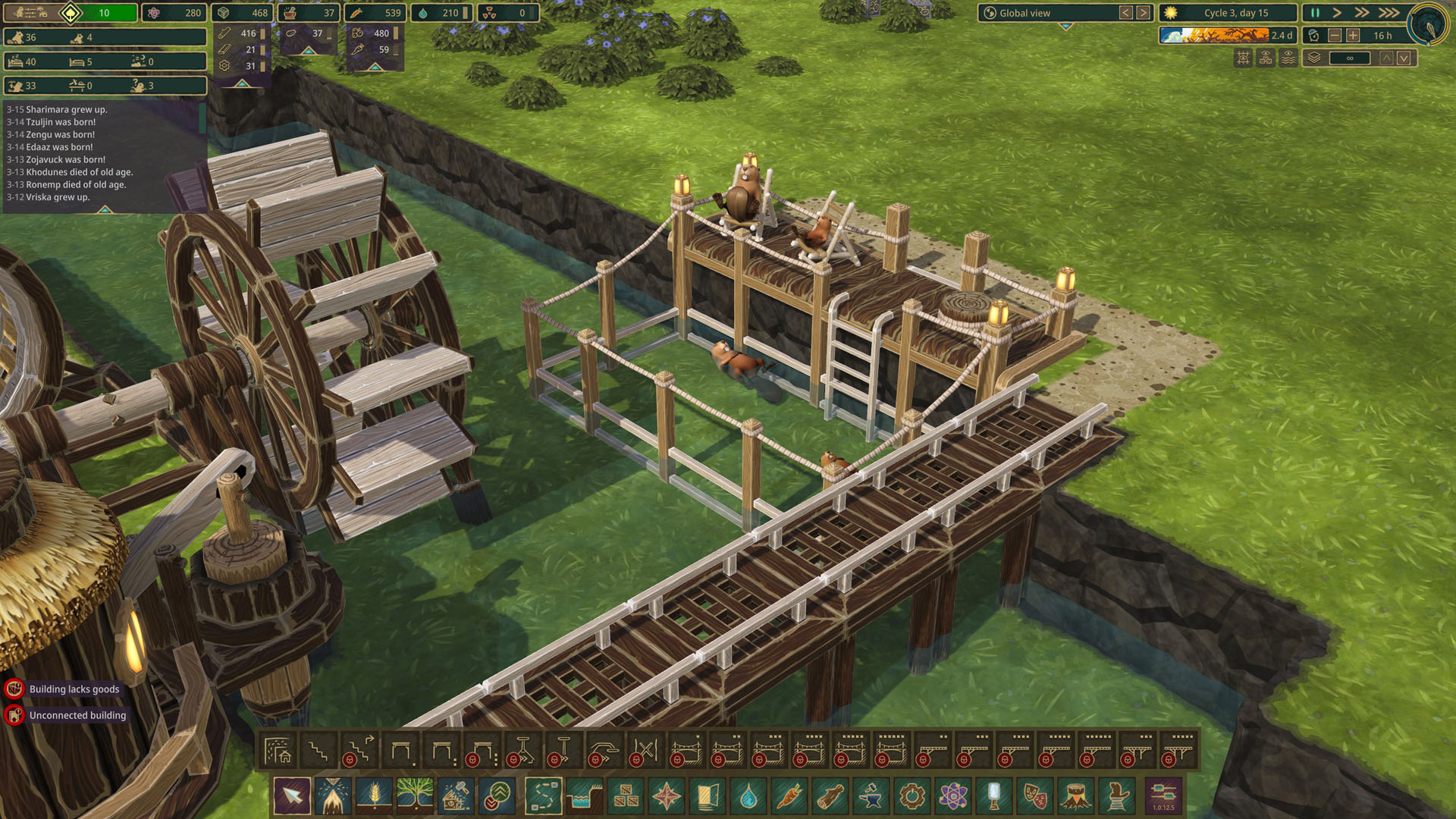 - Бобры умеют плавать, поэтому вы можете строить дороги через воду и даже здания можно строить на воде (но не под водой). Если у вас на карте есть подходящие места для такой застройки, то это ещё один способ сэкономить место.