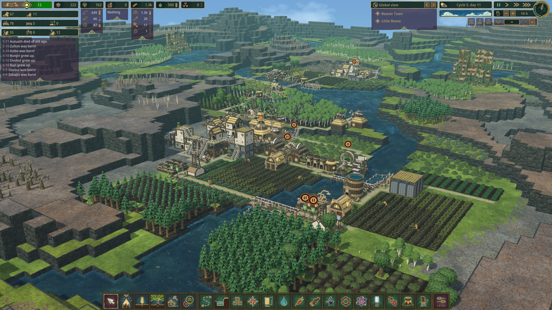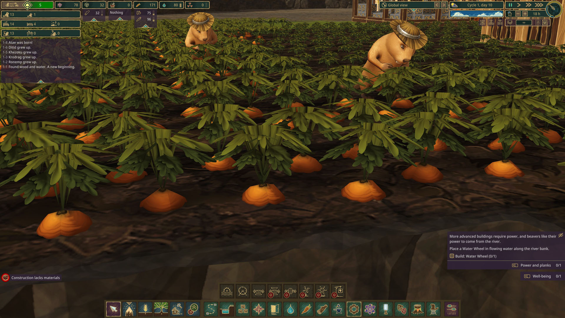- Бобры не умеют не размножаться и единственный способ повлиять на темпы — это строить меньше жилья. Если нет свободных комнат, то будет меньше новых детёнышей. Это, в свою очередь, влияет на уровень счастья (появляются бездомные бобры). Поэтому заранее продумывайте, где вы будете строить следующий дистрикт, иначе вы окажетесь с 30 безработными бобрами без места для новых домов.