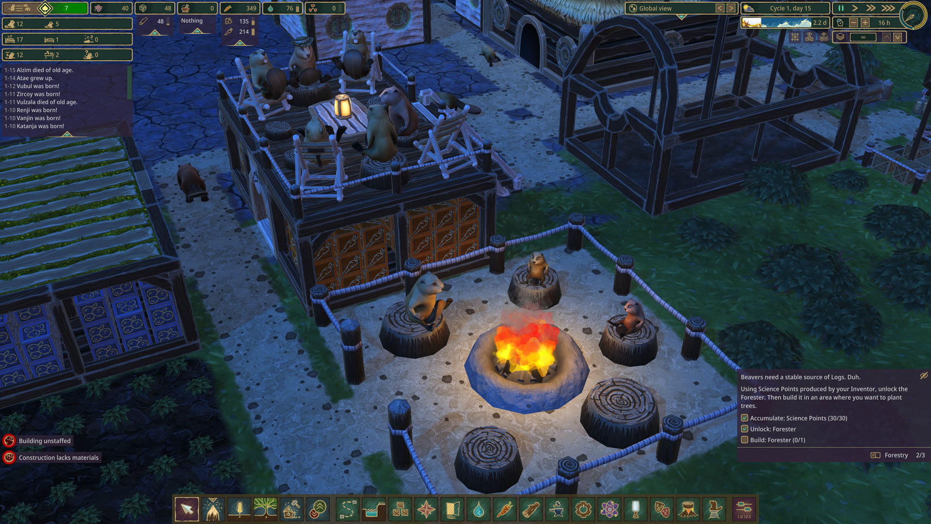 Забавно, что бобрам для счастья не нужна работа, что довольно нетипично для таких игр. Они спокойно могут сидеть без работы днями и даже не пикнут.