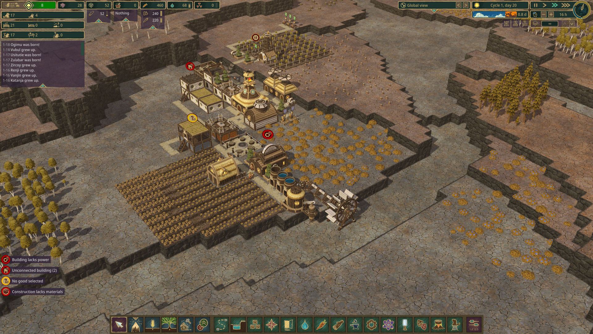 Дистрикты в Timberborn позволяют отправлять тех самых бездельников из предыдущего абзаца на покорение местной Сибири. Каждый новый дистрикт полностью автономен от предыдущего и даже не соединяется с другими напрямую дорогами. То есть его нужно строить так, чтобы он мог сам себя обеспечить ресурсами. Именно так советуют делать в обучении, но вообще это не самый удобный вариант. Дистрикты могут торговать между собой, если вы изучите чертёж для строительства перекрёстка между дистриктами, которое позволить вам обмениваться ресурсами между дистриктами. Меня это лично привело к выводу, что куда удобнее строить дистрикты со специализацией не нескольких ресурсах, а не пытаться добывать всё везде. Кстати, бобры в Timberborn ещё немного и учёные — правда работает наука тут довольно примитивно. Вы просто строитие специальные здания, которые фармят очки науки. Далее вы за них покупаете что-то прямо в меню строительства и в общем-то на этом всё.